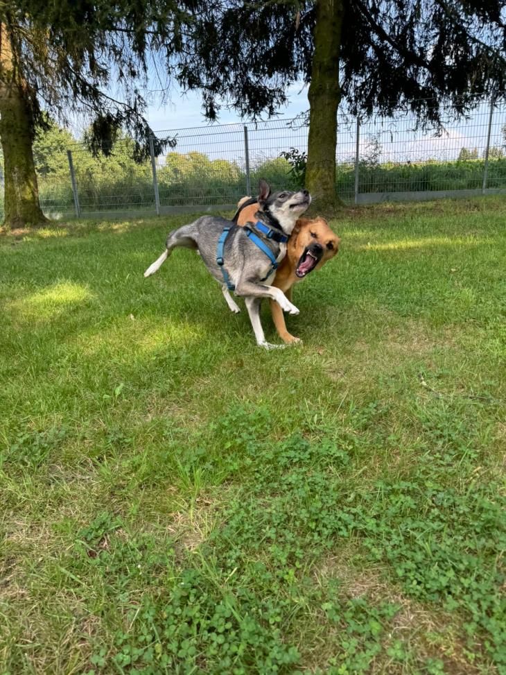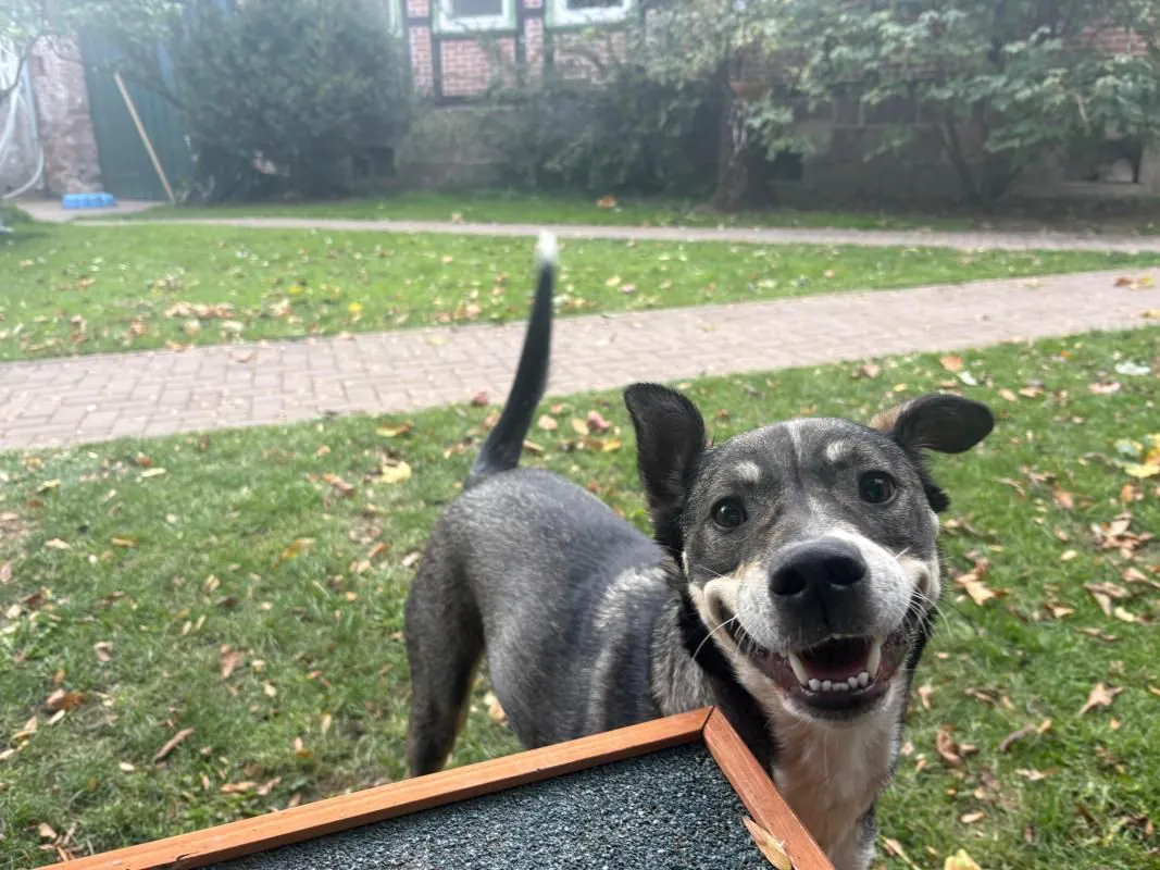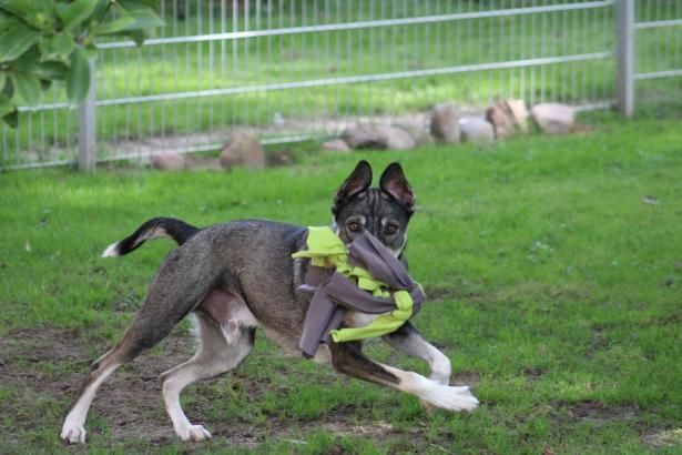 JuJu hat richtig Spaß im Training. Momentan besucht er regelmäßig mit Franzi das Hundetrainingszentrum von Daniela Krüger, wo er mit Clicker-/ Markertraining seine Übungen meistert. Zum Glück fährt er relativ gern Auto, sodass Trainings-Besuche keinen allzugroßen Stress für ihn bedeuten. Er lernt schnell und begeistert und ist einfach froh über die Möglichkeit der Zusammenarbeit. Seine Aufmerksamkeitesspanne ist noch recht kurz und Ablenkung gibt es an jeder Ecke. Jedoch hat man durch Spielies und Snacks die Aufmerksamkeit schnell zurück. JuJu braucht Menschen mit Hundeerfahrung, die sportlich aktiv sein möchten, jedoch die nötige Ruhe und Gelassenheit mitbringen, um aus dem aktiven und altersbedingt noch etwas hibbeligen Kerlchen einen souveränen Begleiter zu machen.
