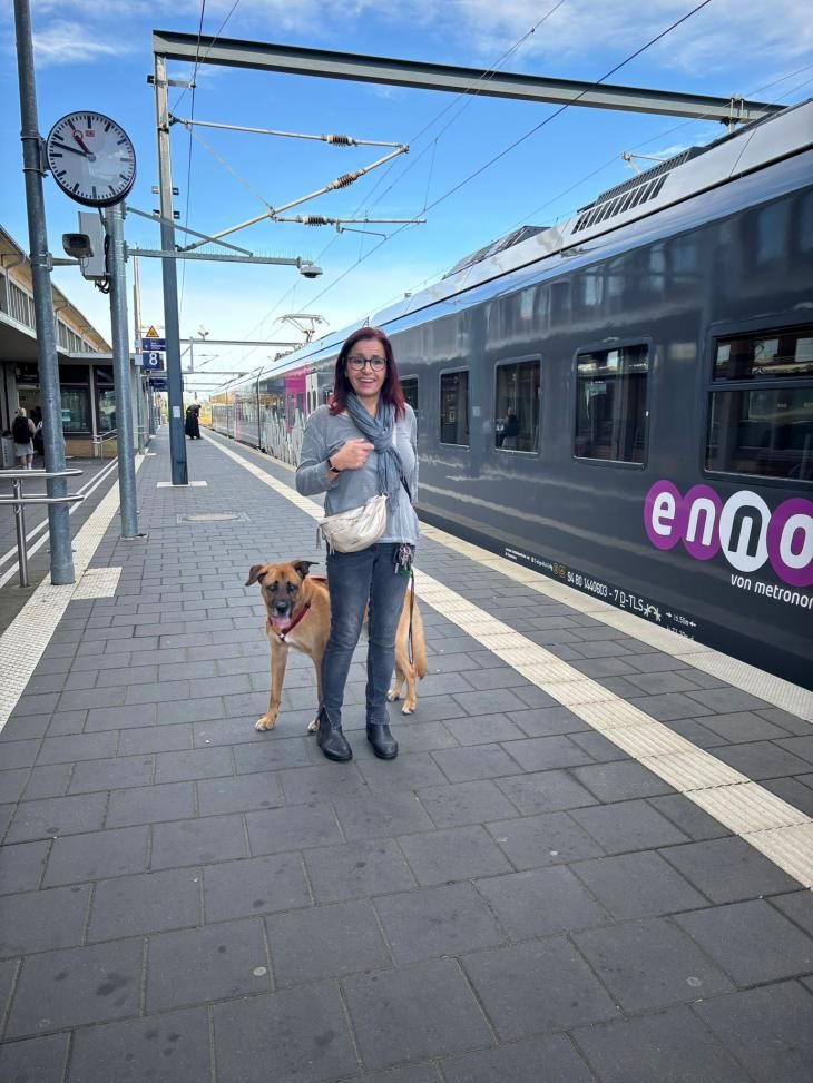 Inzwischen ist unser Trueno bei uns ein alter Mann geworden. Aber er liebt nach wie vor seine kurzen Spaziergänge, macht noch immer gerne seine Übungen und lässt sich ordentlich durchkauen. zum Glück kommt seit langer Zeit seine ganz persönliche Betreuerin Rosina zu uns, die ihn am Wochenende für den Tag mit zu sich holt. Dort kann er entspannen, geht auch mal mit ins Café zum Eisessen und benimmt sich vorbildlich.