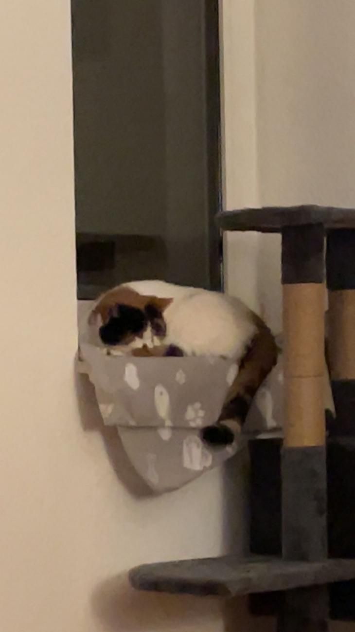 Erna schläft inzwischen durch und liebt das Klettern auf den Möbeln und das beobachten der Straße von ihrem Superausspähposten.