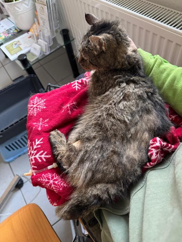 Dieses kleine Omilein wurde uns am 15.01.2025 völlig heruntergekommen und verletzt gebracht.