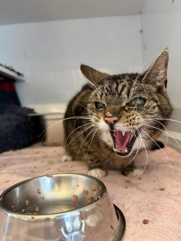 Grim wurde in einer verkommenen Wohnung einfach zurückgelassen – allein, ohne Wasser, ohne Fürsorge, ohne jemanden, der seine Schmerzen sieht. Als wir zu ihm gerufen wurden, war er in einem Zustand, der kaum zu begreifen ist: dehydriert, blind, taub und körperlich schwer geschwächt. Vermutlich hat eine unbehandelte Nieren‑ oder Lebererkrankung ihm über lange Zeit hinweg zugesetzt. Jeder Schritt, jeder Atemzug dürfte ihm wehtun.