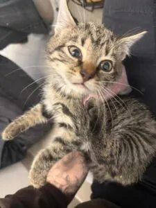 Sie ist einfach nur dankbar, im Warmen zu sein und regelmäßig etwas zu essen zu bekommen. Jetzt wir des aufwärts gehen und wenn Sie dieses Kätzchen schrecklich vermissen (vielleicht hat sie sich verirrt) oder ihr ein Zuhause geben möchten, melden Sie sich gern bei uns.
